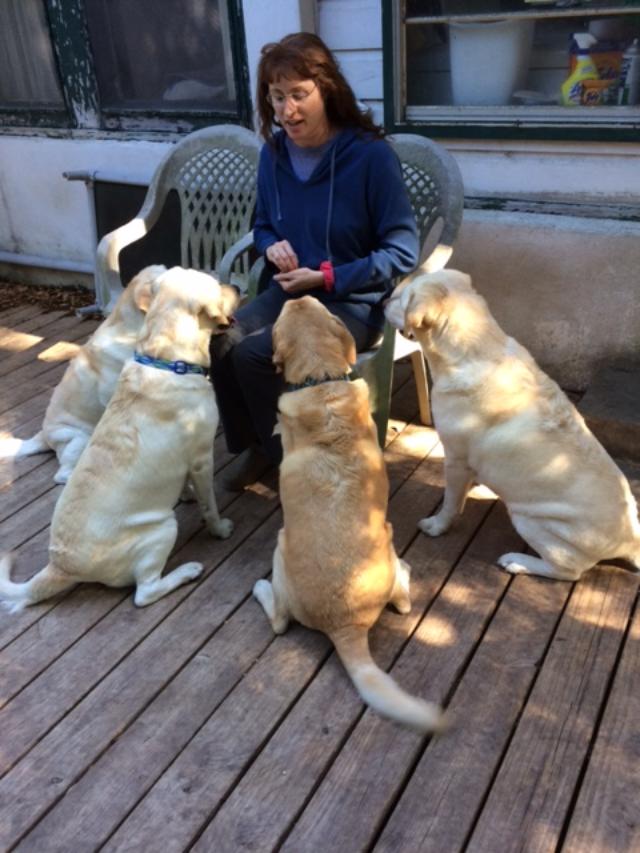 She has trained and used her owned dogs in Therapy work and Search and Rescue.
